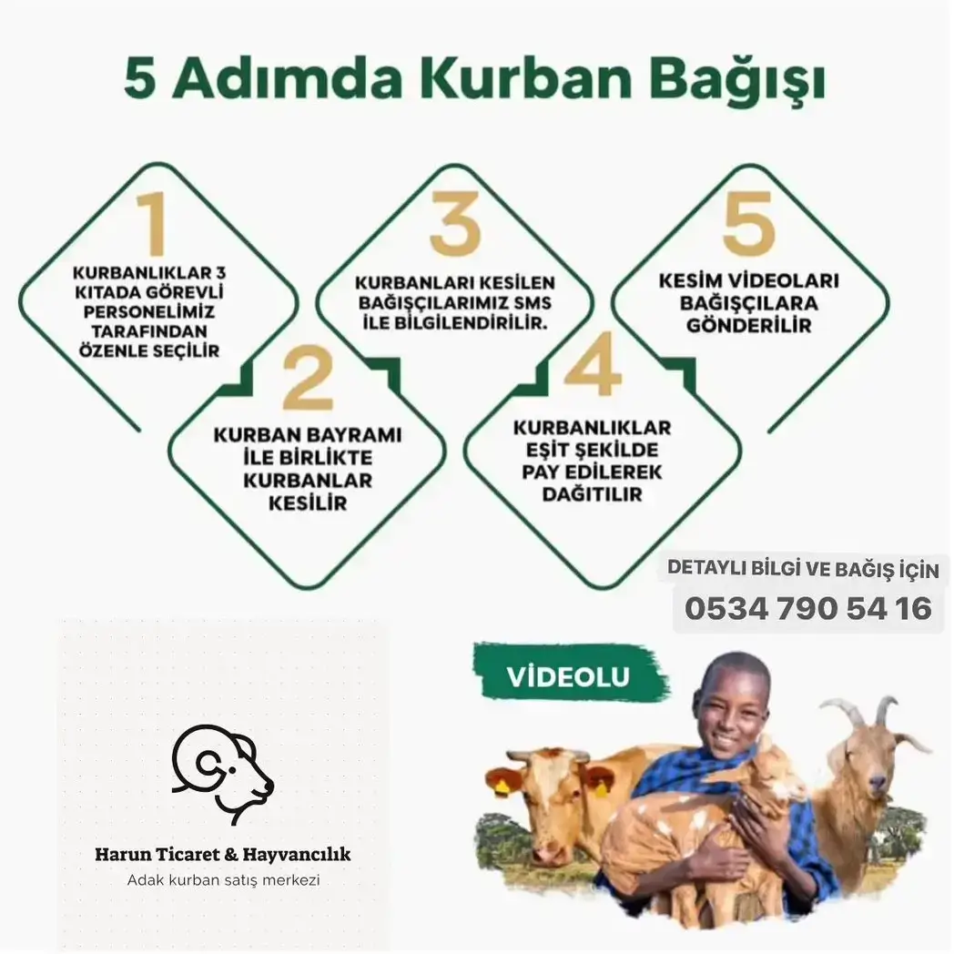 Harun Adak & Kurban kurban bağışı çalışmalarını, 2016’den bu yana güvenilirlik ve şeffaflık ilkesiyle ‘Emanetleriniz, emanetlerimiz’ diyerek şeffaf ve titizlikle yerine getirmeye devam ediyoruz. Kurban bağışlarınızı, islami usullere uygun olarak veteriner hekimlerin kontrolünde ülkelerdeki yerel görevlileri nezaretinde kesilip eşit olarak pay edilerek medrese talebeleri, bölgede bulunan yetimhaneler ile önceden tespit edilen gerçek ihtiyaç sahiplerine dağıtılıyor, kurban emanetlerini tek tek teslim ediyoruz. Tarafınıza kesim videoları gönderilmektedir.